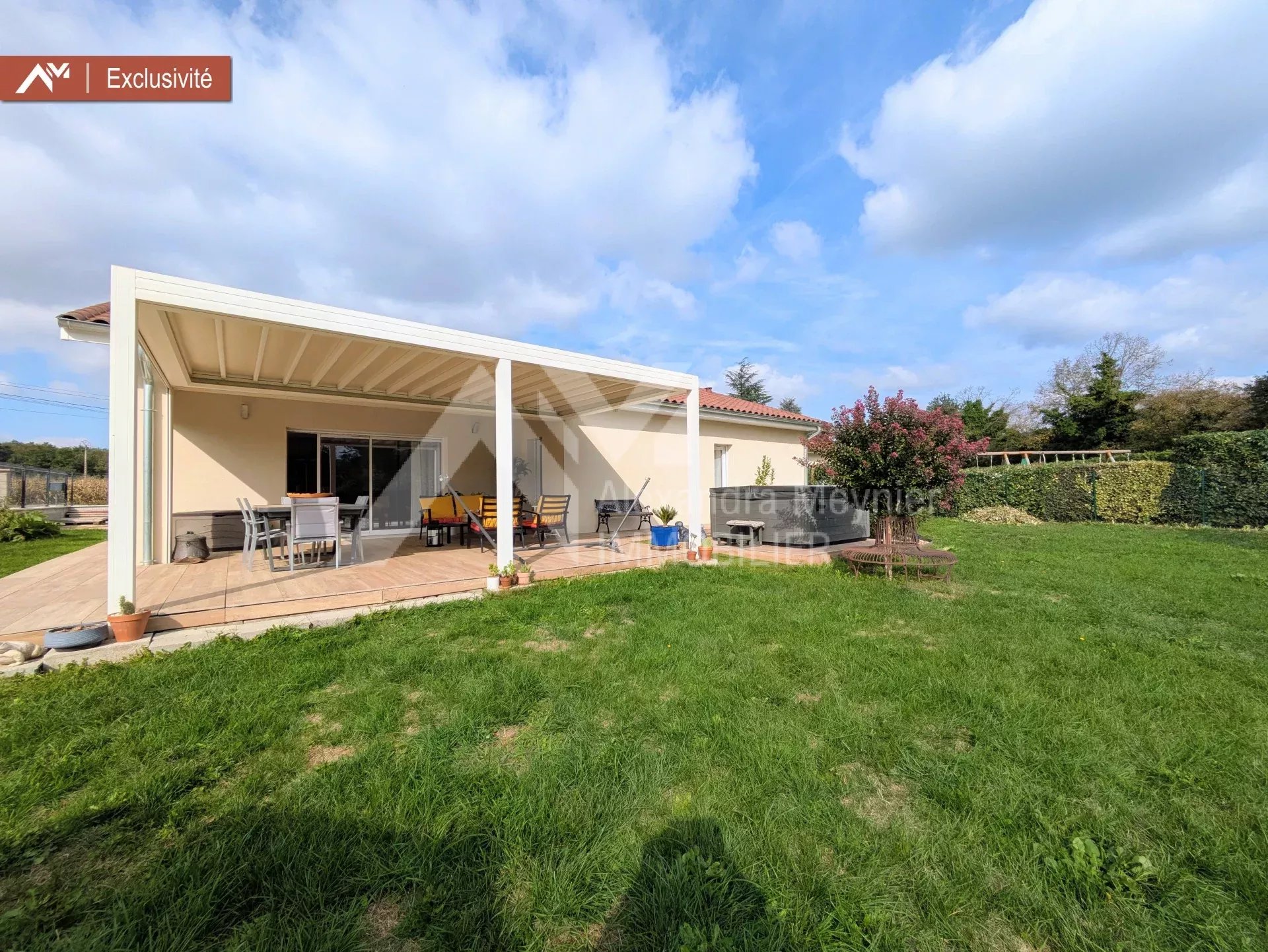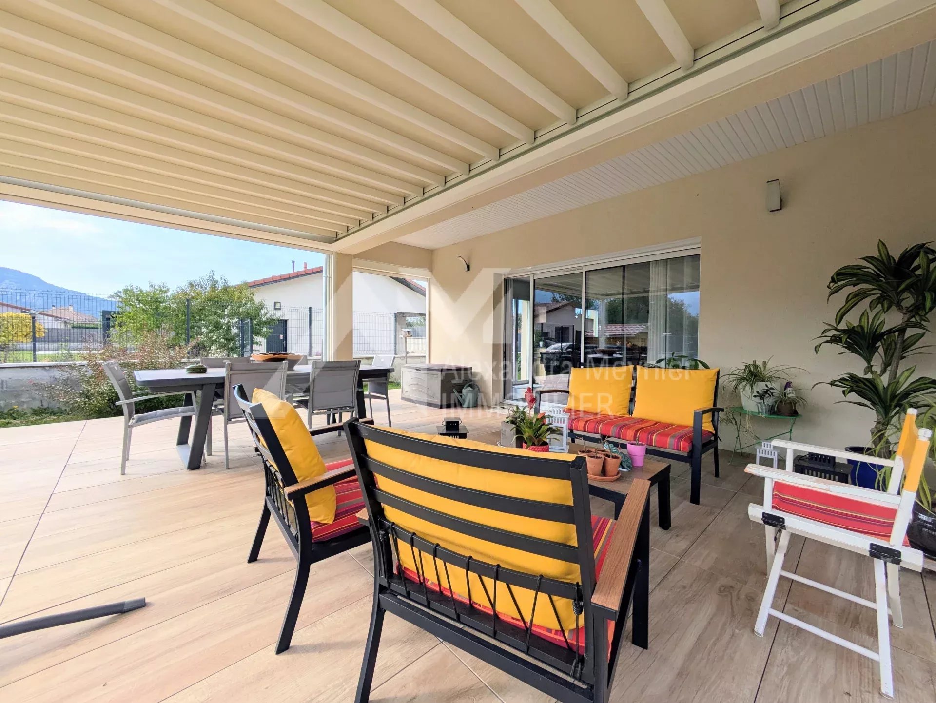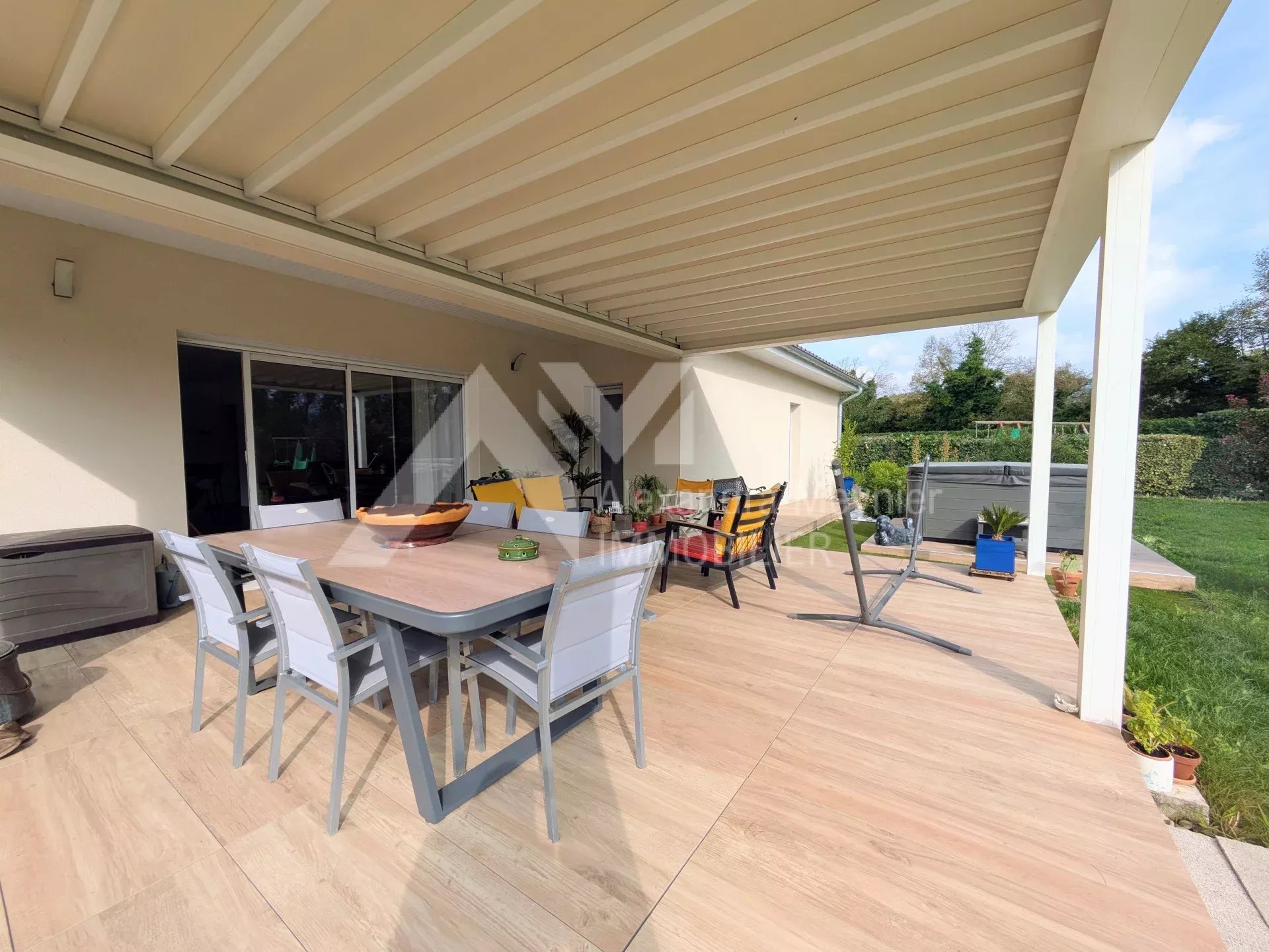 A l'extérieur, vous profiterez d'un terrain joliment clos et arboré de 946m², d'une terrasse avec pergola bioclimatique et d'un espace détente avec jacuzzi 5 places.